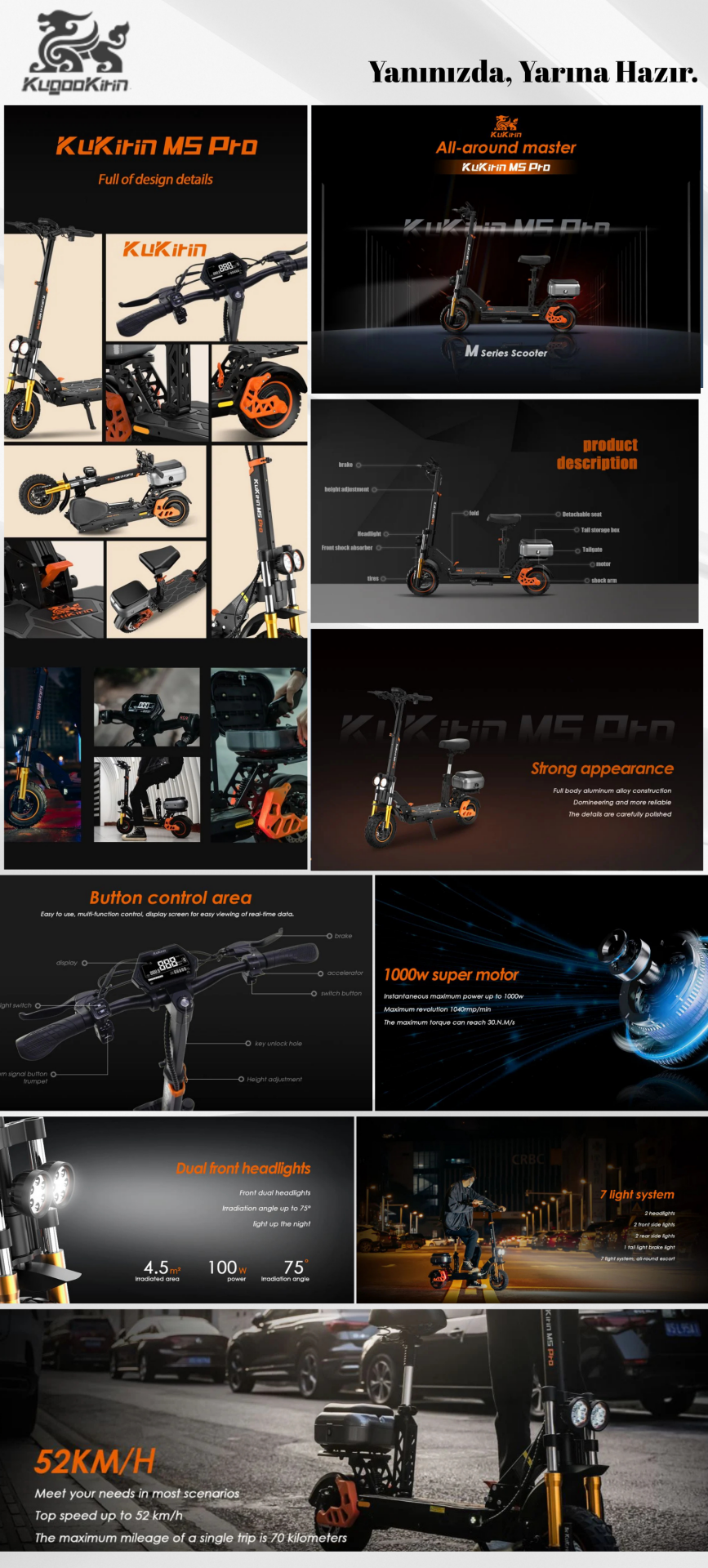 1200 W güçlü motoru ve 20 Ah büyük bataryasıyla tasarlanan KuKirin M5 Pro modeli, uzun yolculukların üstesinden kolayca gelir.