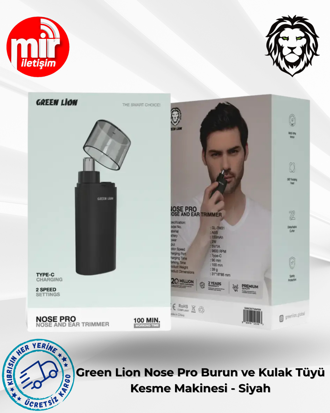 Green Lion Nose Pro Burun ve Kulak Düzeltici, kullanıcı dostu yapısını korurken, güvenlik konusunda kişiye özel ayrıntılar sunmak için tasarlanmıştır. 9600 RPM yüksek hızlı motorlar ve dayanıklı ABS malzemeden üretilmiş gövdesinde 360° dönebilen bir kafa bulunur. Kısa sürede, oldukça pürüzsüz bir şekilde düzeltebilirsiniz. Çıkarılabilir kesici, kolayca temizlik yapmanızı sağlar. Cilt tahrişini ve kazara kesikleri önlemek için bir güvenlik koruma sistemi eklenmiştir. 90 dakikalık Type-C hızlı şarj ile 100 dakikaya kadar kullanım sağlayan 150 mAh'lik kolay bir güç kaynağına sahiptir. Rahatlık ve konfor için özelleştirilmiş iki ayarlanabilir hız ayarıyla, her bireyin bakım rutini için vazgeçilmez bir makinedir.