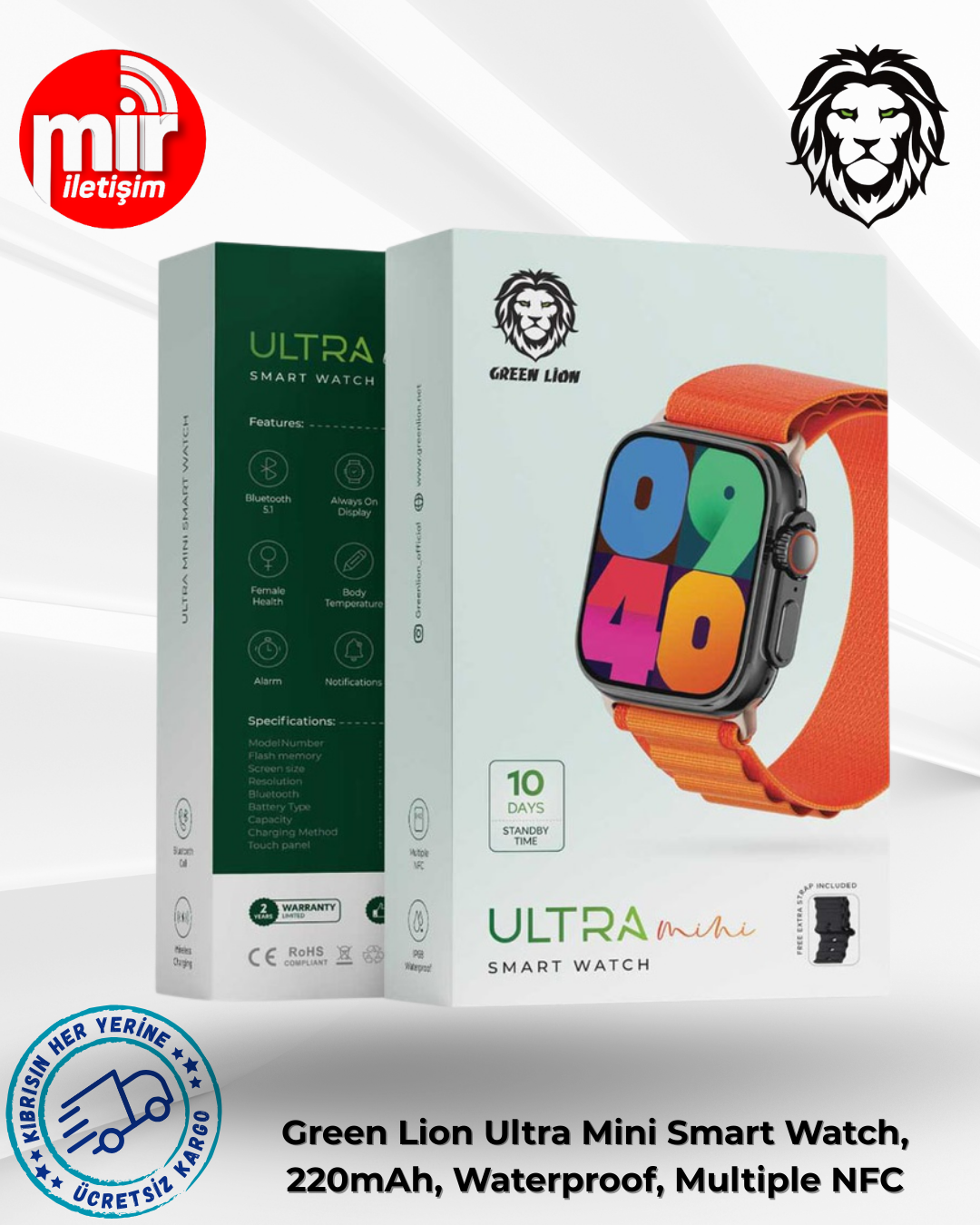 Green Lion Ultra Mini Smart Watch, 220mAh, Waterproof, Multiple NFC