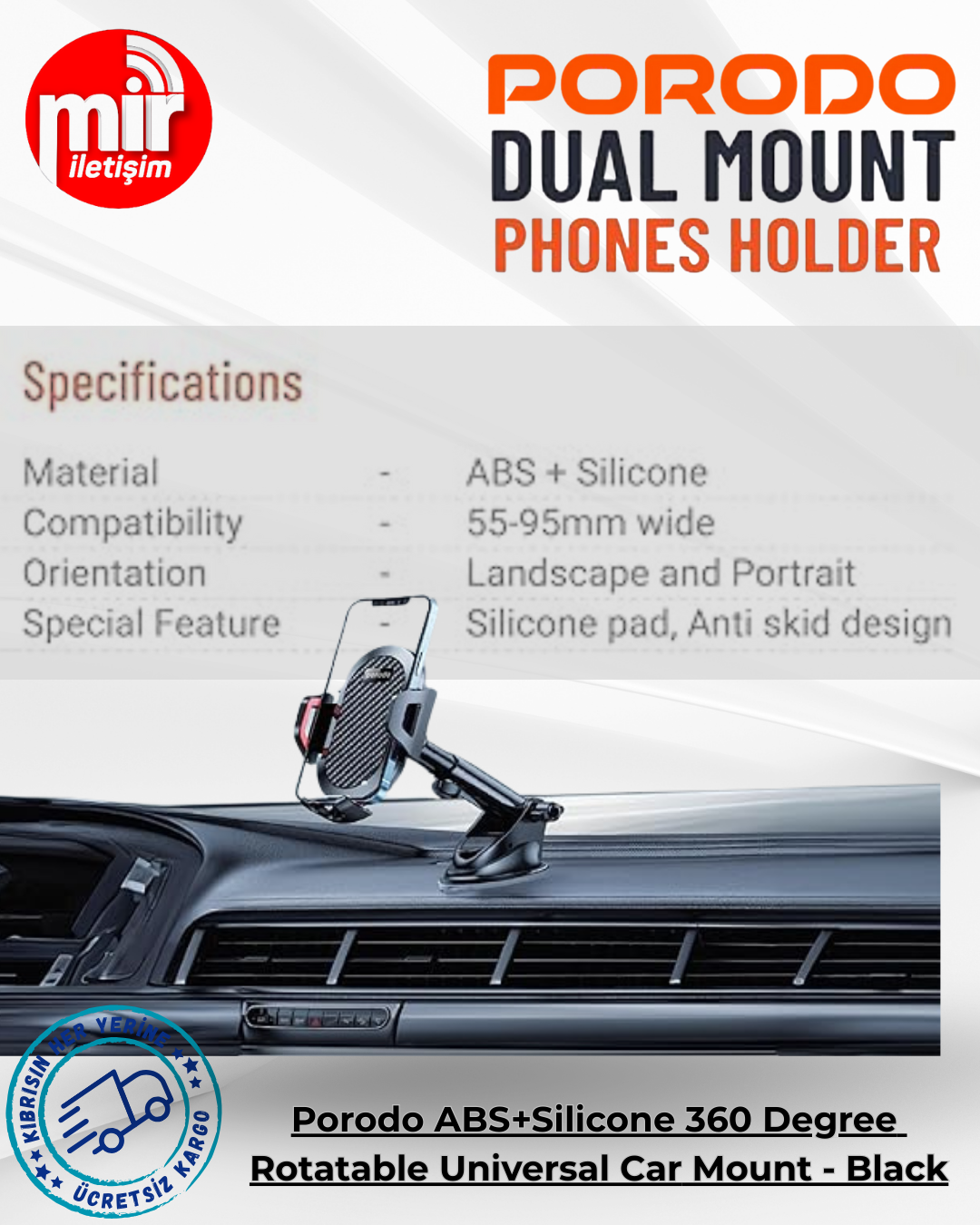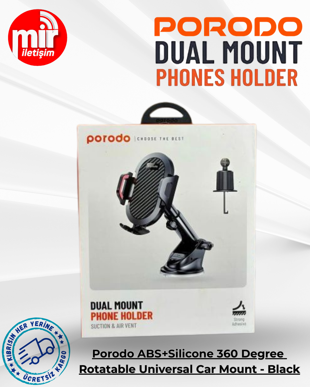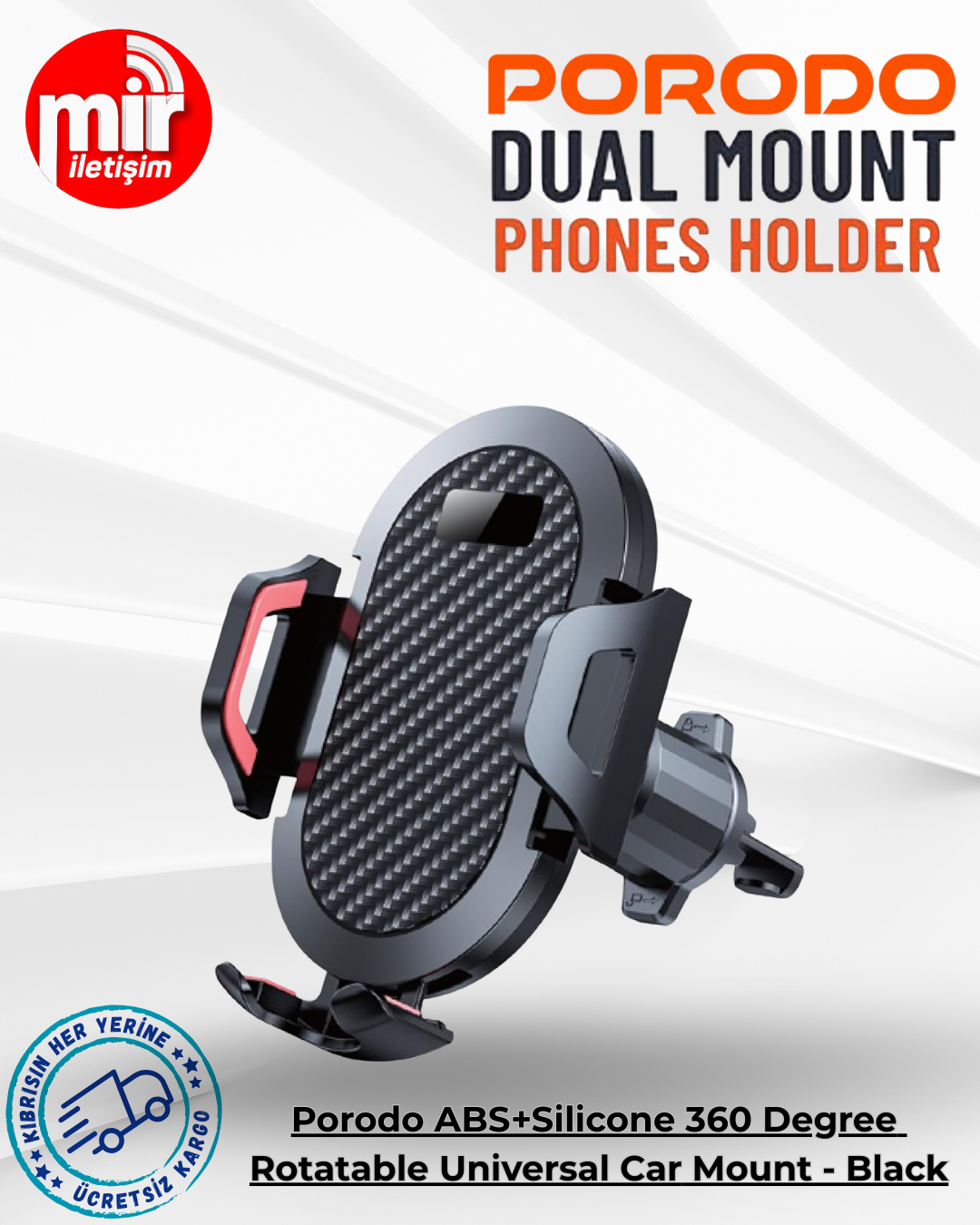 Porodo ABS+Silicone 360 Degree Rotatable Universal Car Mount - Black