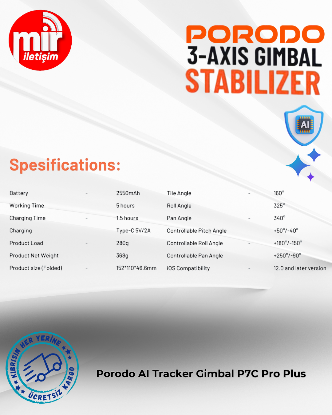 Porodo AI Tracker Gimbal P7C Pro Plus