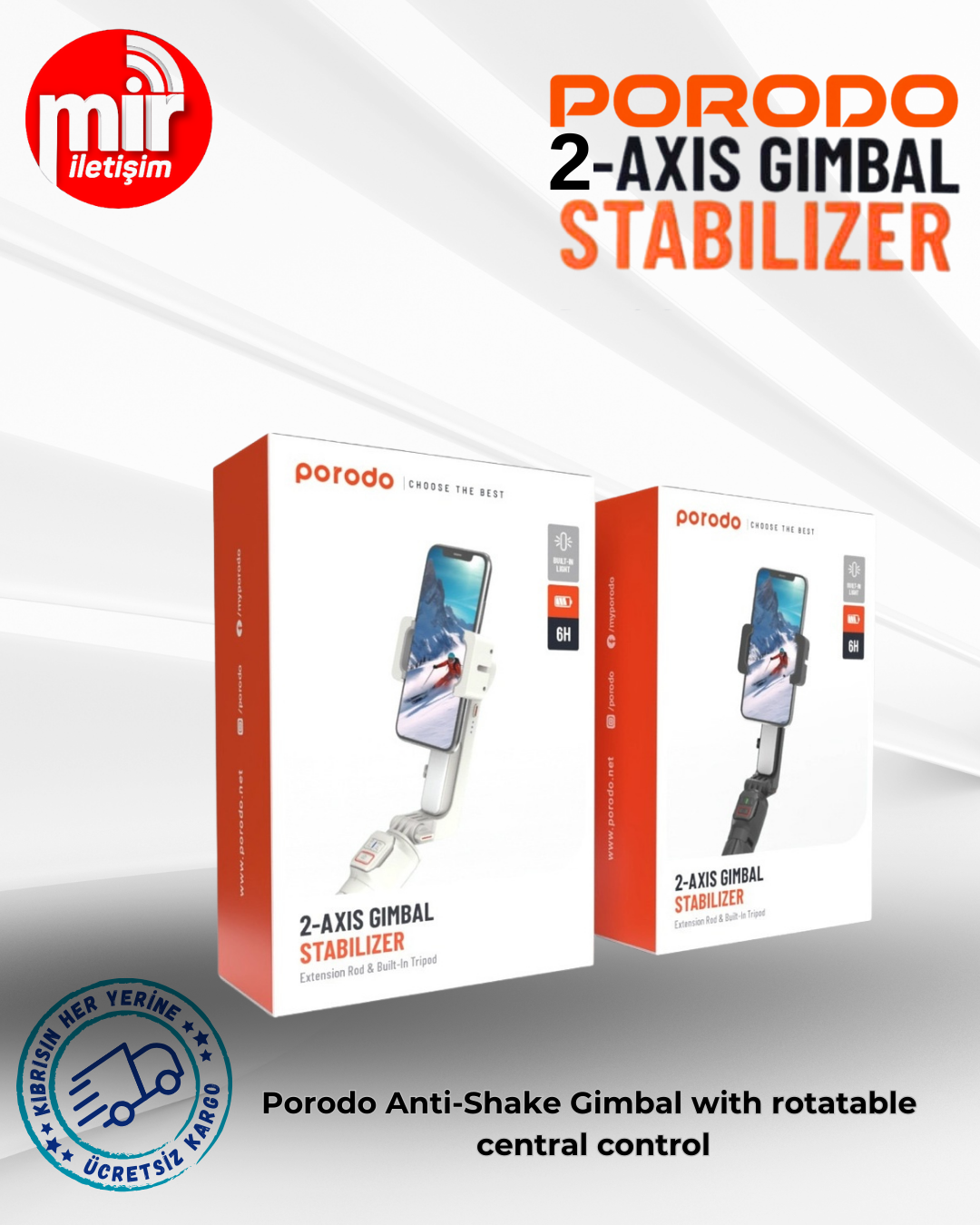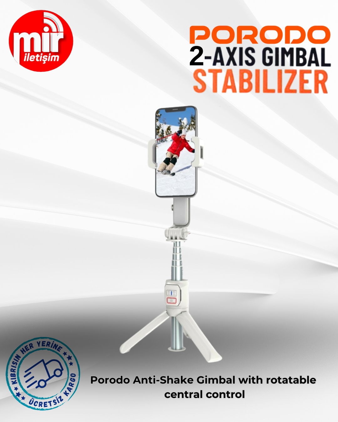 Porodo Anti-Shake Gimbal with rotatable central control
