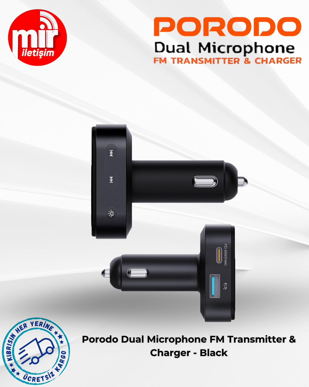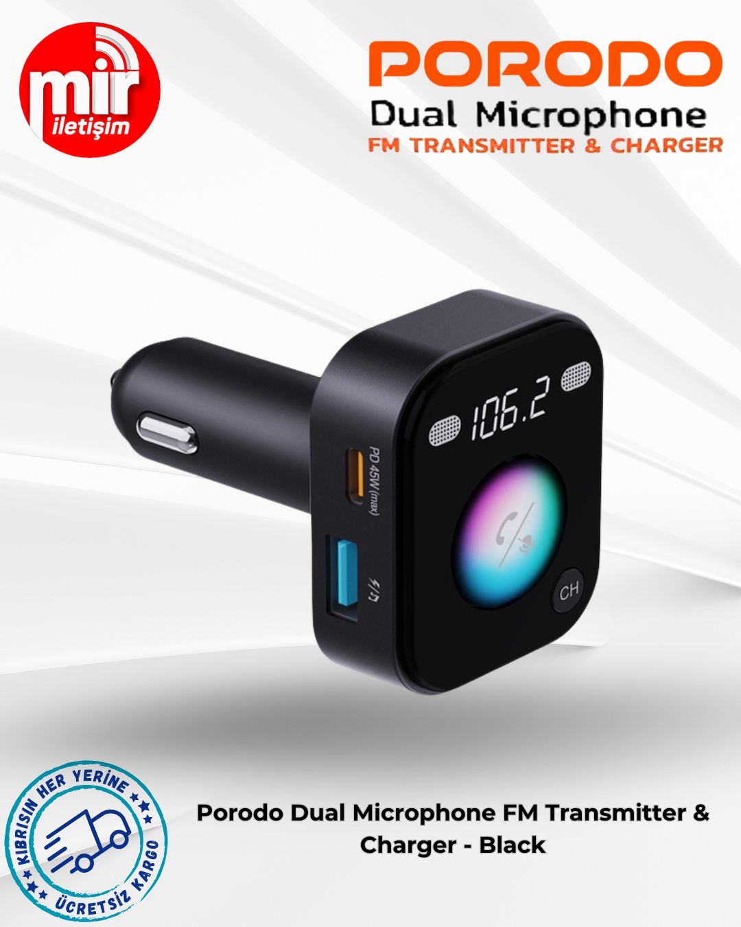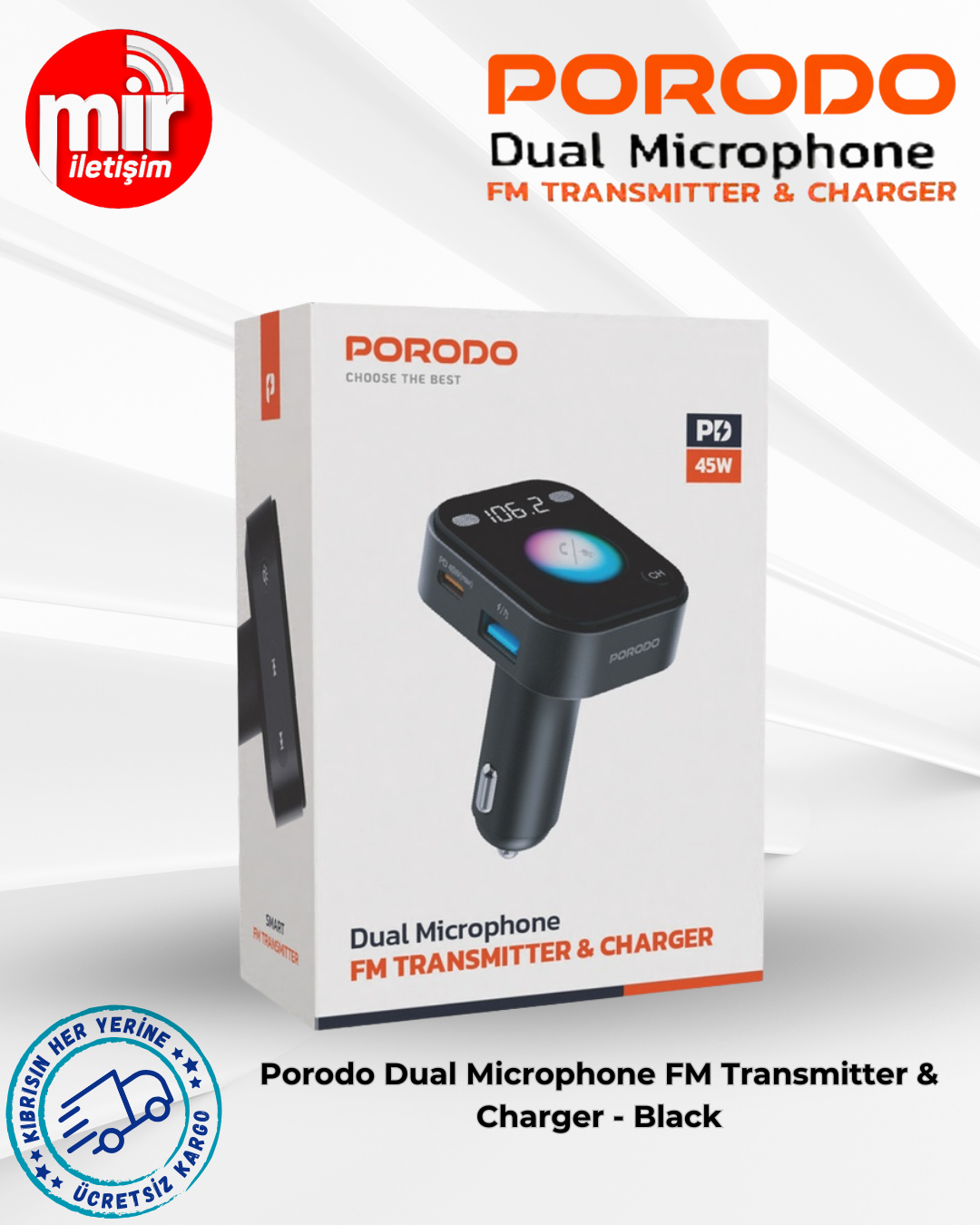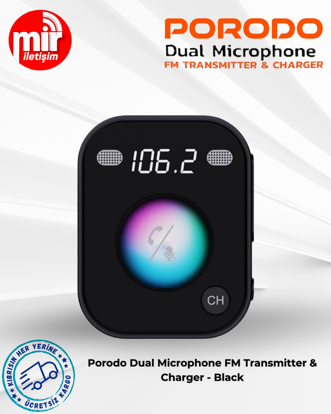 Porodo Dual Microphone FM Transmitter & Charger - Black