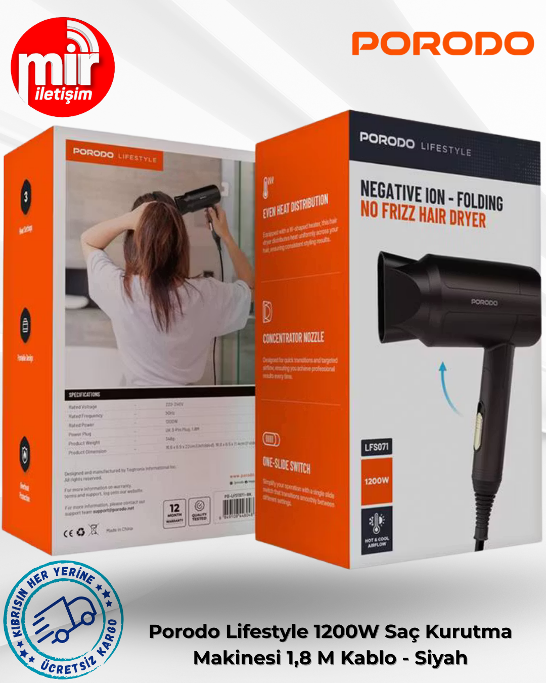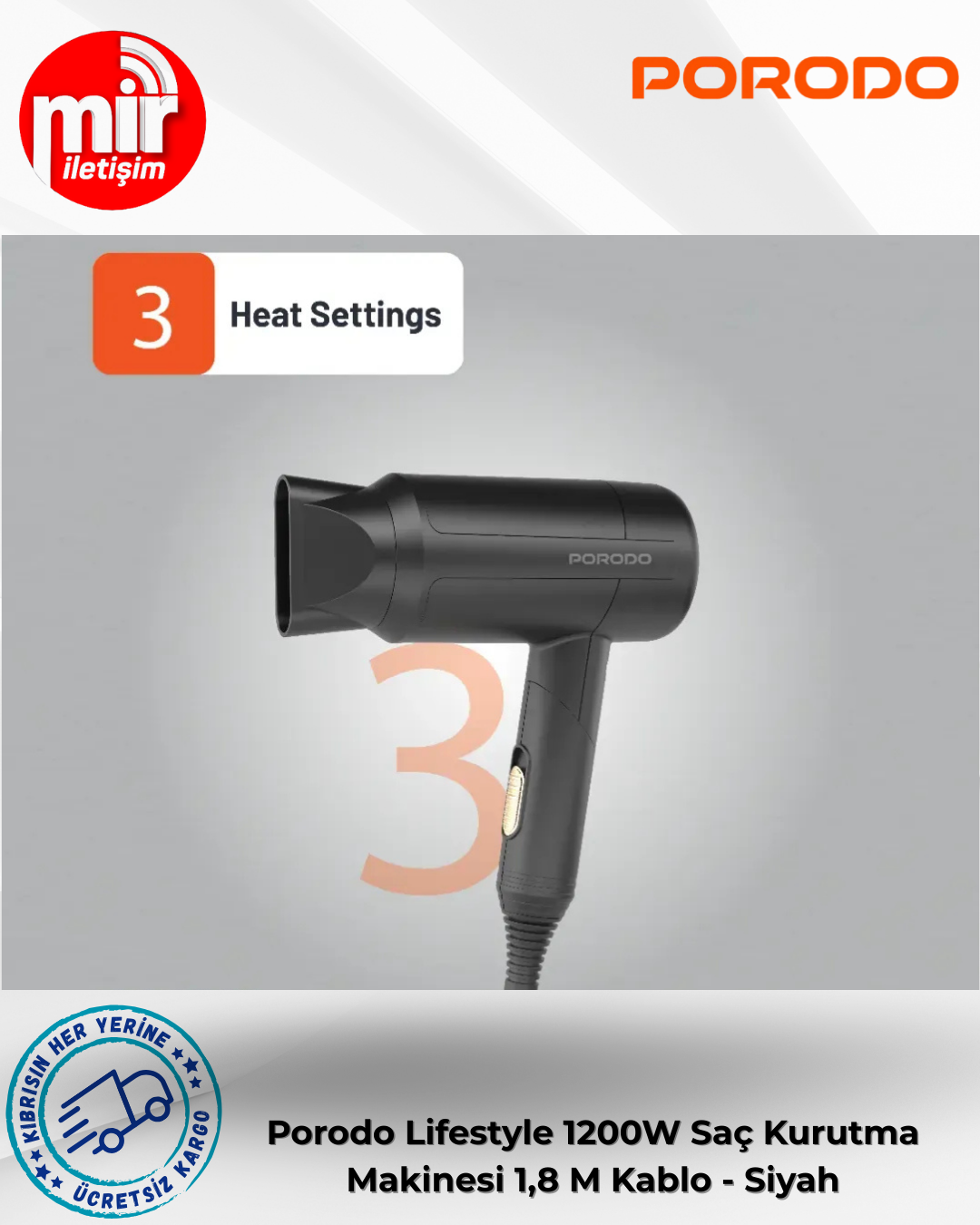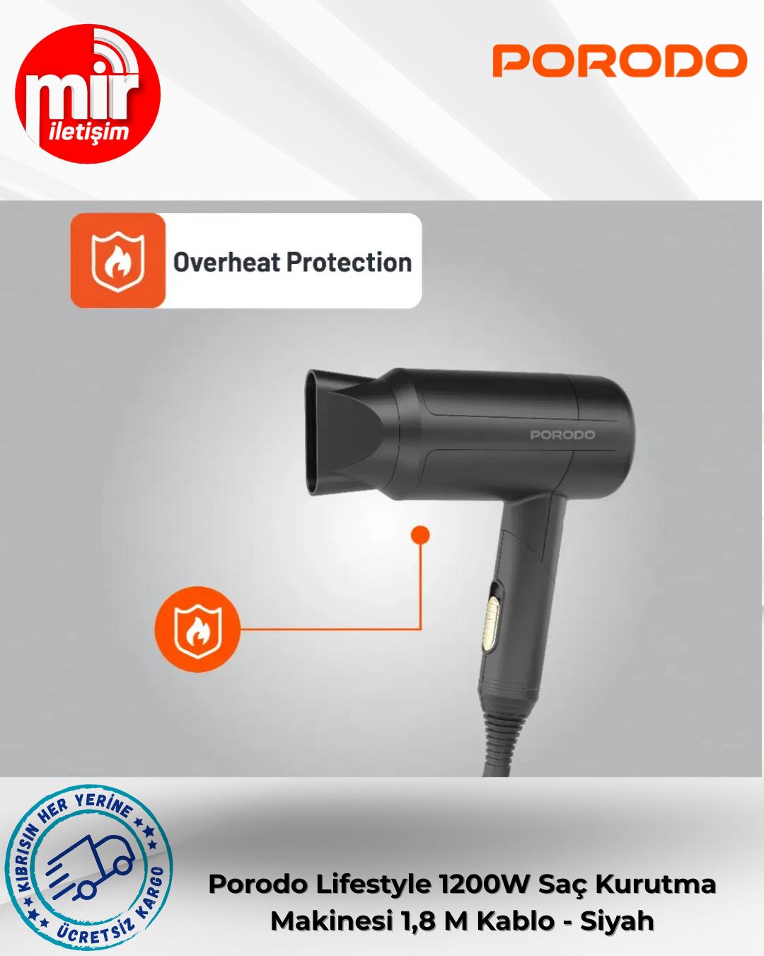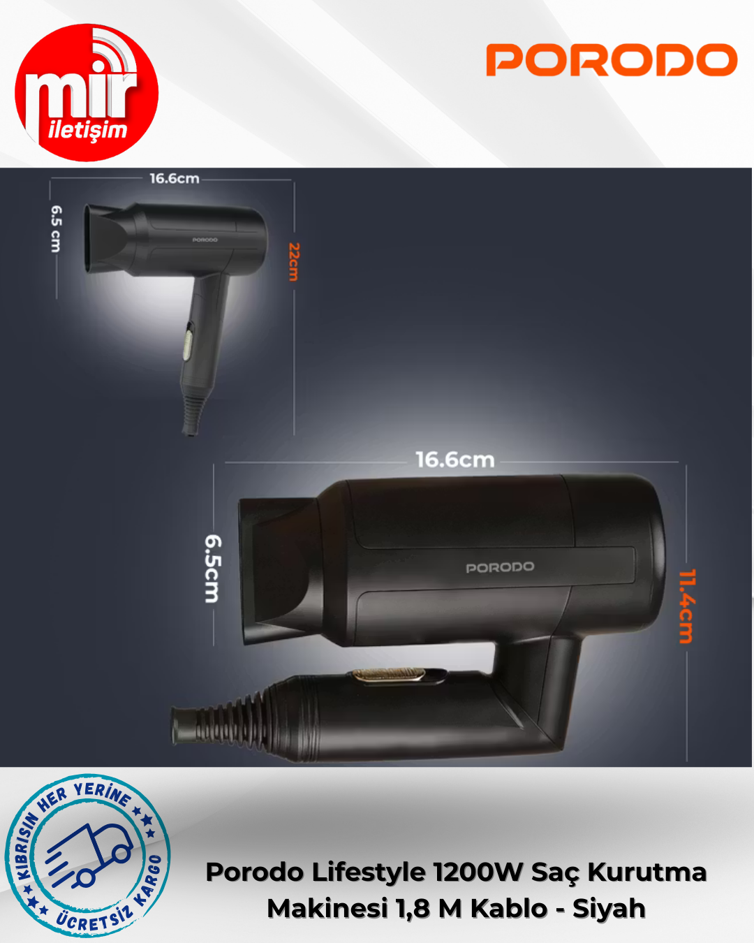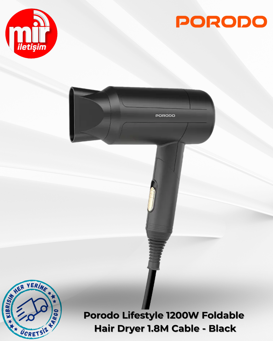 Porodo Lifestyle 1200W Katlanabilir Saç Kurutma Makinesi 1,8 M Kablo - Siyah