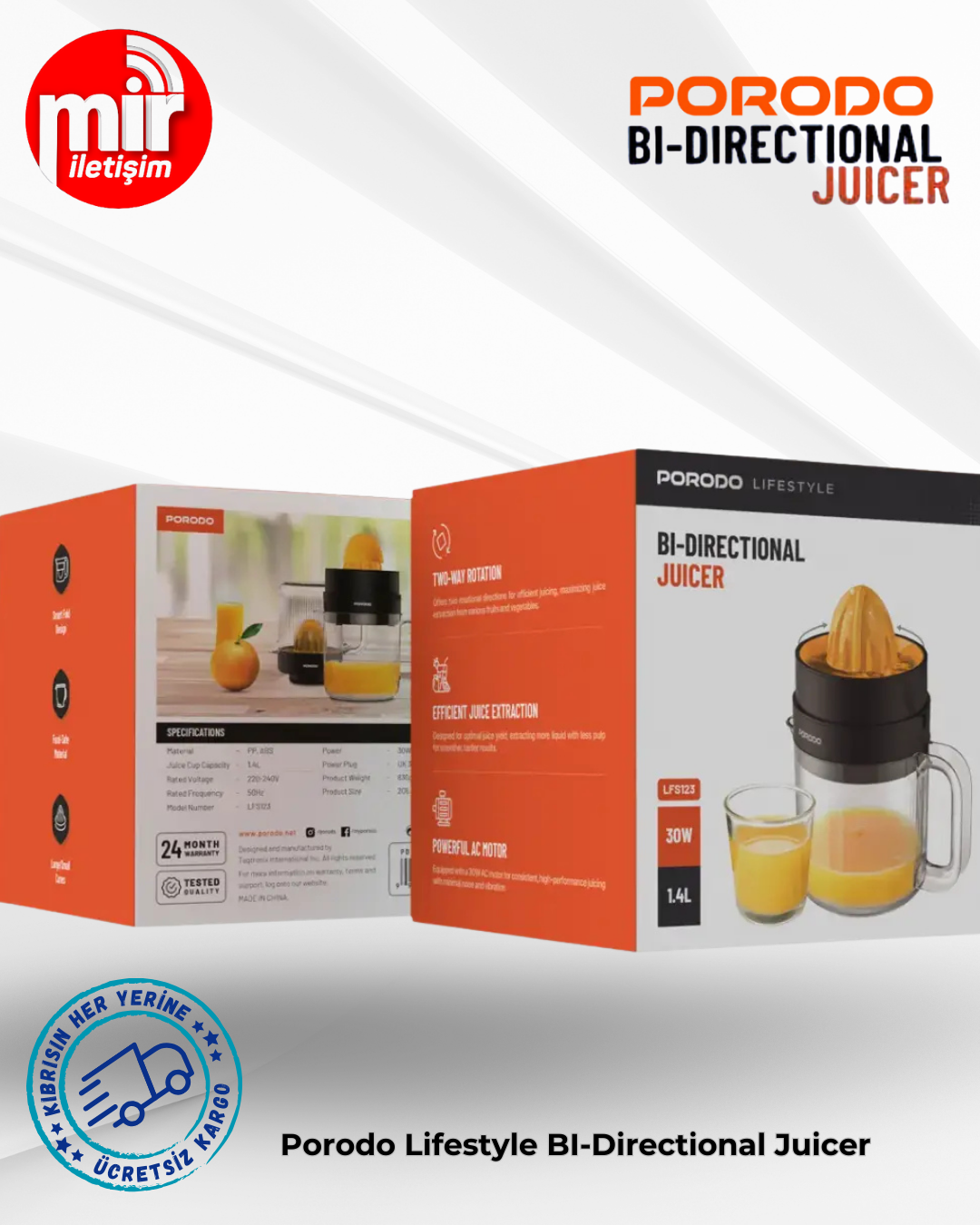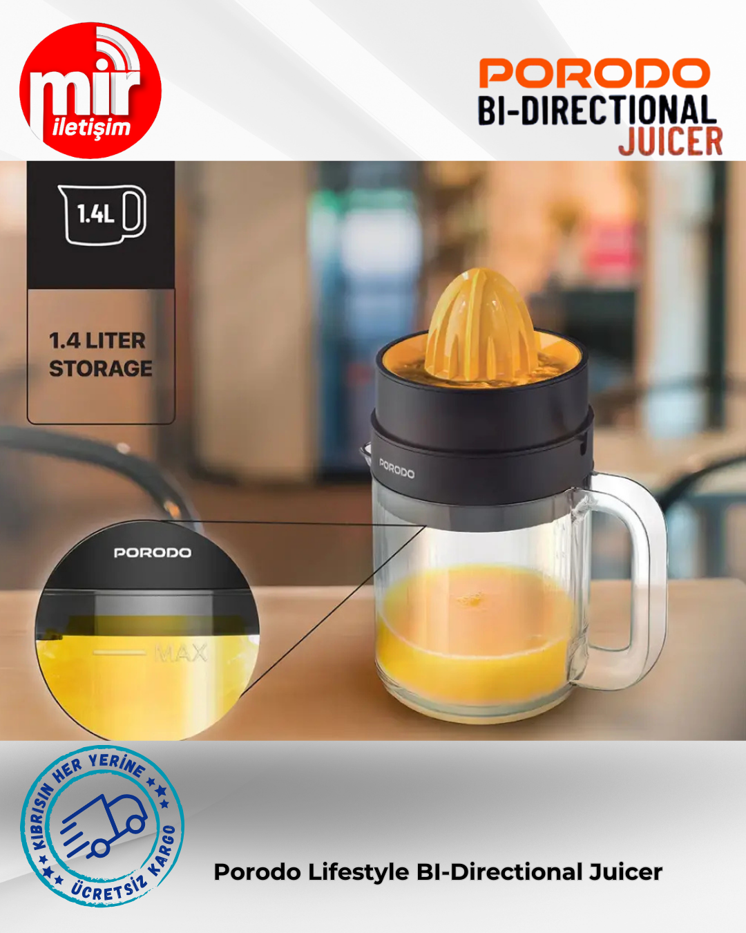 Porodo Lifestyle Çift Yönlü Meyve Sıkacağı, ister yoğun ister çok yönlü olsun, meyve suyu sıkma işleminde verimli performans gösterir. Sadece PP ve ABS gibi gıda güvenli malzemelerden üretilen bu ürün, büyük miktarda taze meyve suyu hazırlamak için yeterli olan 1,4 litrelik meyve suyu haznesi kapasitesine sahiptir. 30W güç değerine sahip olan ürün, 220-240V arası bir güç kaynağında verimli bir şekilde çalışır ve İngiltere tipi 3 pinli fişe sahiptir. Meyve sıkacağında büyük ve küçük koniler bulunur, böylece istediğiniz kadar meyve suyu sıkabilirsiniz. Çift yönlü dönüş, mümkün olan en fazla meyve suyunu çıkarmanızı garanti ederken, akıllı katlama tasarımı kolay saklama imkanı sağlar. Hızlı meyve suyu veya büyük miktarlarda meyve suyu yapmak isteyen kullanıcılar, ipeksi pürüzsüzlükte ve zahmetsiz bir performans elde ederler. Her mutfak için ideal olan bu ürün, küçük bir alanda işlevselliği ön plana çıkararak meyve suyu sıkmayı keyifli hale getirir.