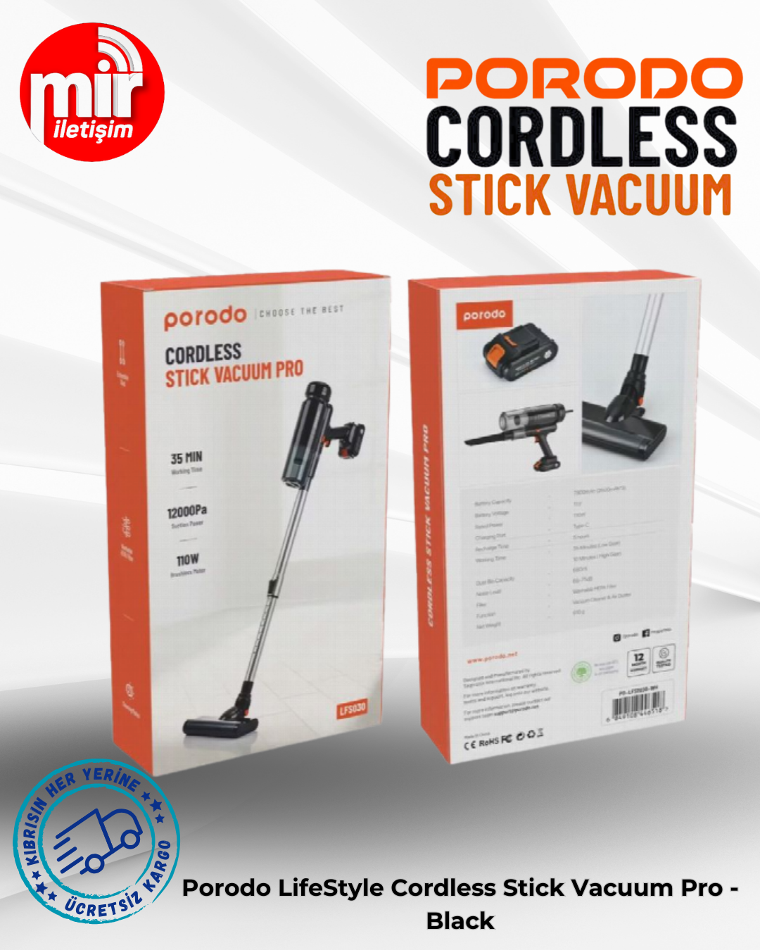 Porodo LifeStyle Cordless Stick Vacuum Pro - Black