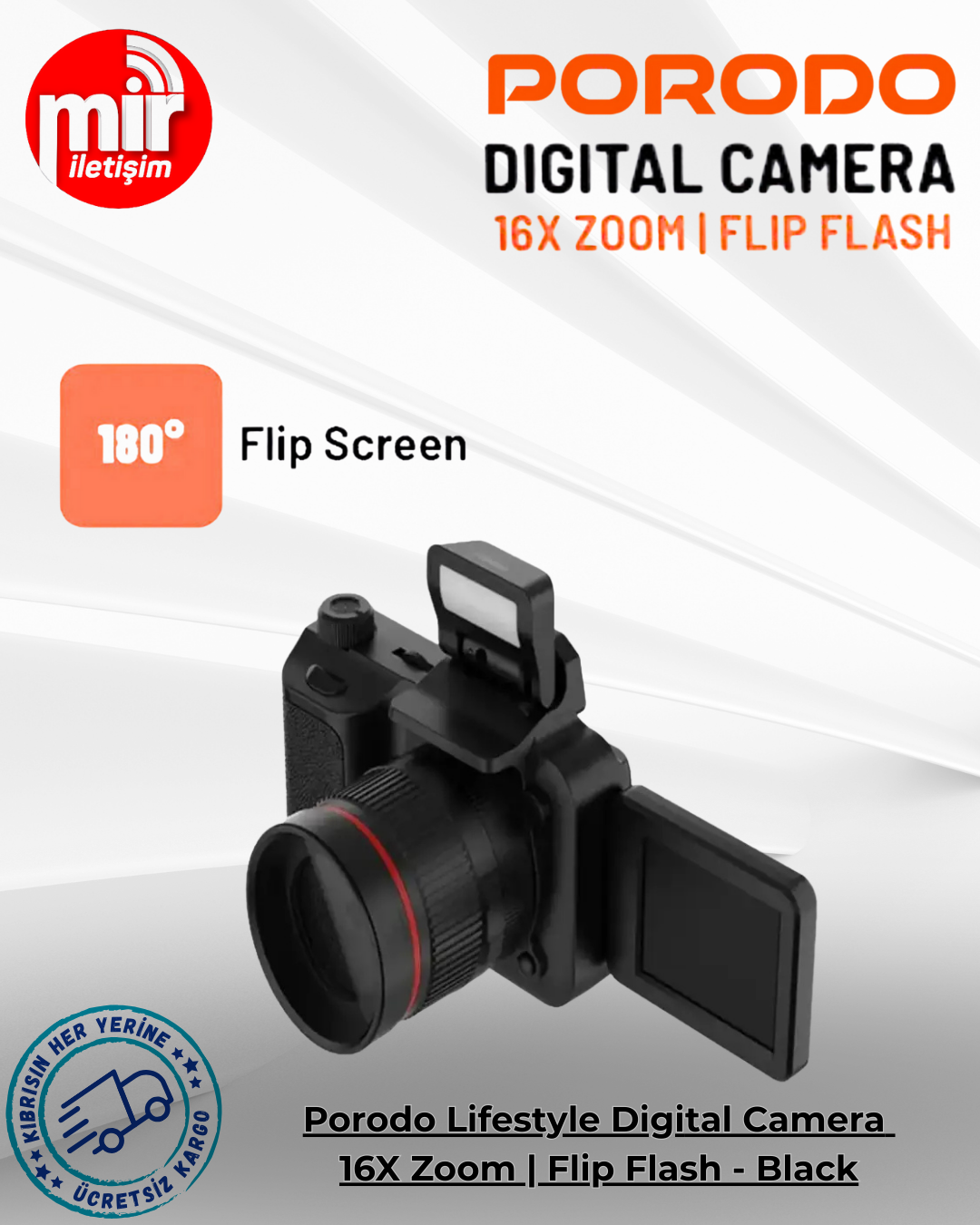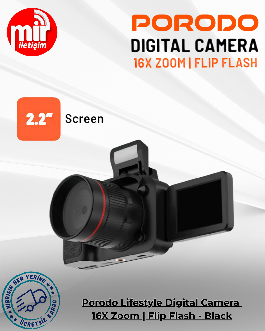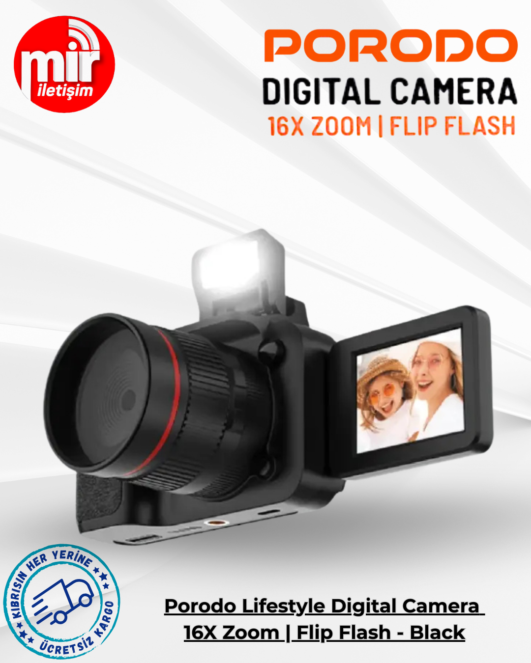 Porodo Lifestyle Digital Camera 16X Zoom | Flip Flash - Black