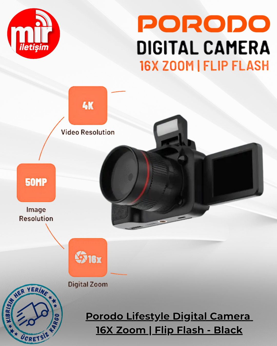Porodo Lifestyle Dijital Fotoğraf Makinesi 16X Zoom | Flip Flash, harika fotoğraf ve video çekimleri için tasarlanmış küçük ve güçlü bir kameradır. 50MP görüntü çözünürlüğü ve 4K (3840 × 2160) video çözünürlüğü, fotoğraf veya video için hassas ve parlak çekimler sağlar. 16X dijital zoom, son derece detaylı yakın çekimlere olanak tanırken, 2,2 inç ve 180 derece dönebilen ekran, kolay selfie'ler ve esnek vlog'lar çekmenizi sağlar. 650mAh pil ile 3 saate kadar çalışma süresi sunar. Type-C şarj portuna takılabilir ve en hızlı şekilde 2,5 saatte şarj olur. Bu kameranın ekran çözünürlüğü 240 x 320'dir ve son derece taşınabilir bir kamera için kristal netliğinde bir görüntü sağlar. Bu da onu amatör veya profesyonel, büyük veya küçük herkes için ideal bir seçim haline getirir. Böylece, bu kullanıcı dostu cihazda bulunan gelişmiş özelliklerle içerik oluştururken, anlık fotoğraflar çekerek veya videolar kaydederek anlar yaratabilirsiniz.