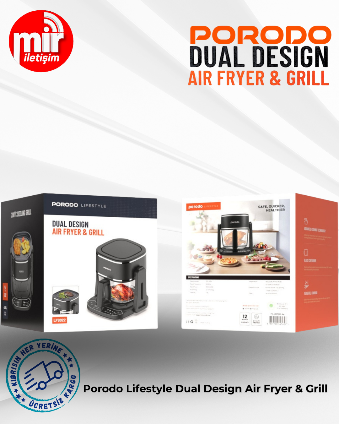 Porodo Lifestyle Dual Design Air Fryer & Grill - Black