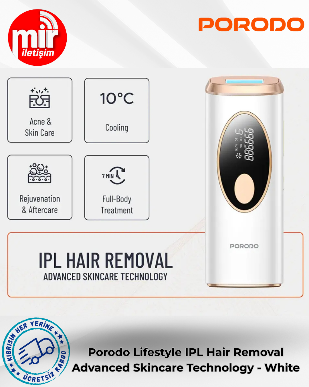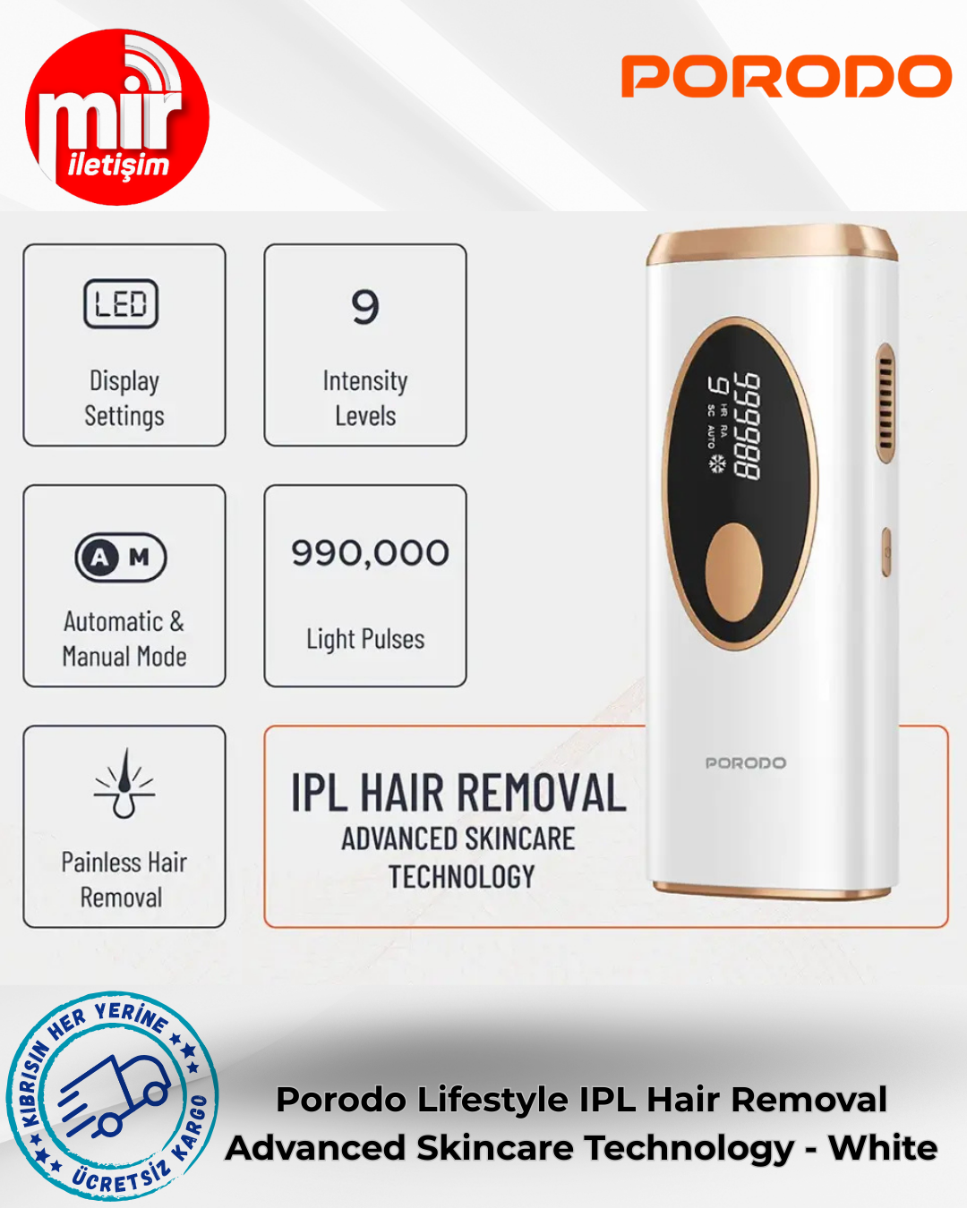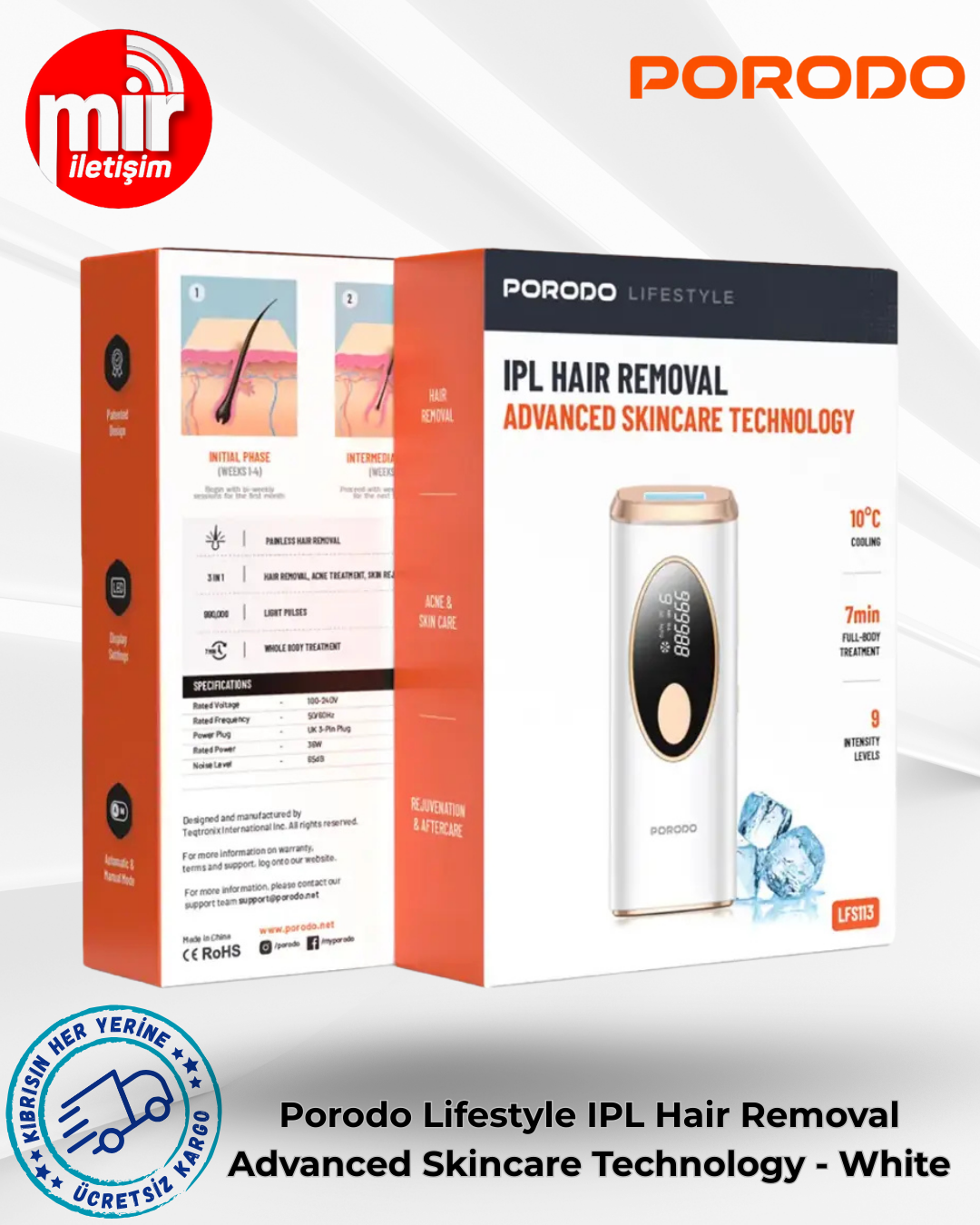 Porodo Lifestyle IPL Epilasyon Cihazı, evinizin rahatlığında salon deneyimi için gelişmiş teknoloji ve cilt bakımının özünü bir araya getiriyor. Patentli IPL darbeli ışık sistemi, cilt tonuna ve kıl tipine uygun dokuz ayarlanabilir enerji seviyesi sunarak her işlemde hassasiyet ve yumuşaklık sağlıyor. Farklı vücut bölgelerine hitap eden otomatik ve manuel modlara sahip. 3 cm²'lik genişletilmiş ışık çıkış alanı sayesinde daha geniş bir alanı hızlıca kaplıyor; tüm vücut uygulaması 7 dakikada tamamlanabiliyor. Bahsedilen özelliklerin yanı sıra, cilt güvenliği için işlem sırasında ve sonrasında 10°C'ye kadar soğutma özelliği de sunuyor. Epilasyon için çok fonksiyonlu olan cihaz, akne azaltma, cilt gençleştirme ve işlem sonrası bakımı da etkili bir şekilde destekliyor. İngiltere 3 pinli fişiyle donatılmış olan cihaz, kolay ayar için bir ekrana sahip ve sadece 65 dB ses seviyesiyle sessiz çalışıyor. Kişisel kullanım için mükemmel. Bu hepsi bir arada güzellik çözümüyle cilt bakımınızı bir üst seviyeye taşıyın.