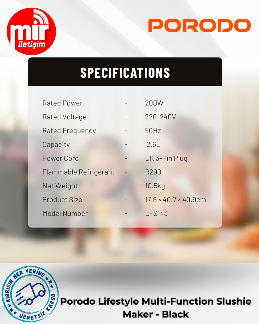 Porodo Lifestyle Çok Fonksiyonlu Buzlu İçecek Makinesi, lezzetli dondurulmuş içecekleri hızla hazırlayan çok yönlü bir cihazdır. 200 watt gücünde çalışan ünite, buzlu içecekler, milkshake'ler, frappe'ler ve hatta dondurmalar hazırlamak için yeterli gücü sağlar ve 2,6 litrelik bir hazneye sahiptir. Nominal voltaj ve frekans sırasıyla 220-240V ve 50Hz olup, 15 ila 60 dakika arasında hızlı dondurma işlemini tamamlar. Kontroller, her şeyi fazla zahmet çekmeden çalıştırmanıza olanak tanır; karıştırma motoru, oluşan ve karıştırılan buzlu içeceklerin dokusunun pürüzsüz ve tutarlı olması için çok iyi bir karıştırma sağlar. Çevre dostu R290 soğutucu akışkanıyla çalışan buzlu içecek makinesi, aynı zamanda güçlü ve çevre bilincine sahip bir üründür. Güç kablosu, mutfağınızda kolay kurulum için 3 pimli İngiltere fişiyle birlikte gelir. İster köpüklü bir buzlu içecek, ister koyu kıvamlı bir milkshake tercih edin, Porodo Lifestyle Çok Fonksiyonlu Buzlu İçecek Makinesi, hızlı ve kolay içecekler hazırlamanız için burada.