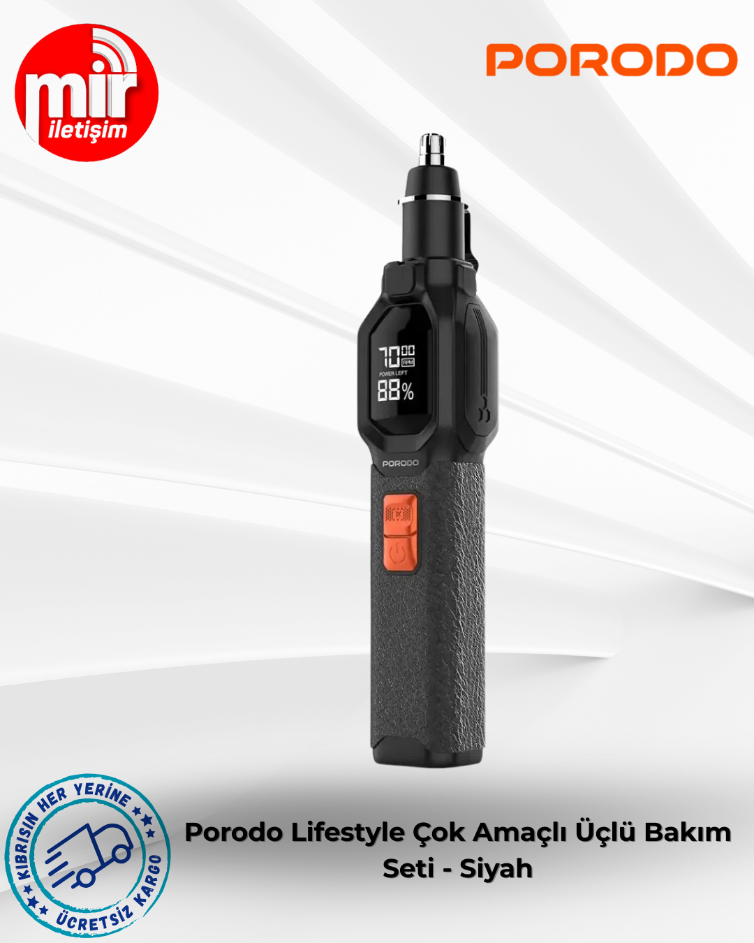 Porodo Lifestyle Çok Amaçlı Üçlü Bakım Seti, bakım ihtiyaçlarınız için çok yönlü bir çoklu düzeltme seçeneğidir. 7000 RPM'de çalışan 5 W motorunun, istediğiniz anda pürüzsüz ve hassas bir kesim yapmanız için oldukça kullanışlı olduğunu göreceksiniz. Tek bir şarjla 200 dakika kesintisiz kullanım sağlayan 2000 mAh pil ile birlikte gelir ve USB-C üzerinden 2,5 saatlik hızlı şarj özelliğine sahiptir. LED ekrandaki pil göstergesi pil durumu hakkında sizi bilgilendirirken, kablosuz tasarımı tam bir kullanım özgürlüğü sunar. Bu, yüz, sakal ve saç kesimi için ideal ve kişisel bakımda olmazsa olmaz bir çoklu düzeltme bakım seti olduğu anlamına gelir. Porodo Lifestyle Çok Amaçlı Üçlü Bakım Seti, ister evde ister yolda olun, her zaman en üst düzey güvenilirlik ve performansı garanti eder