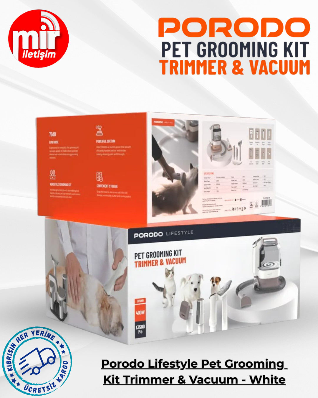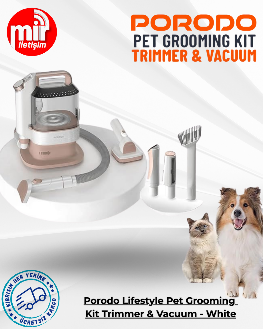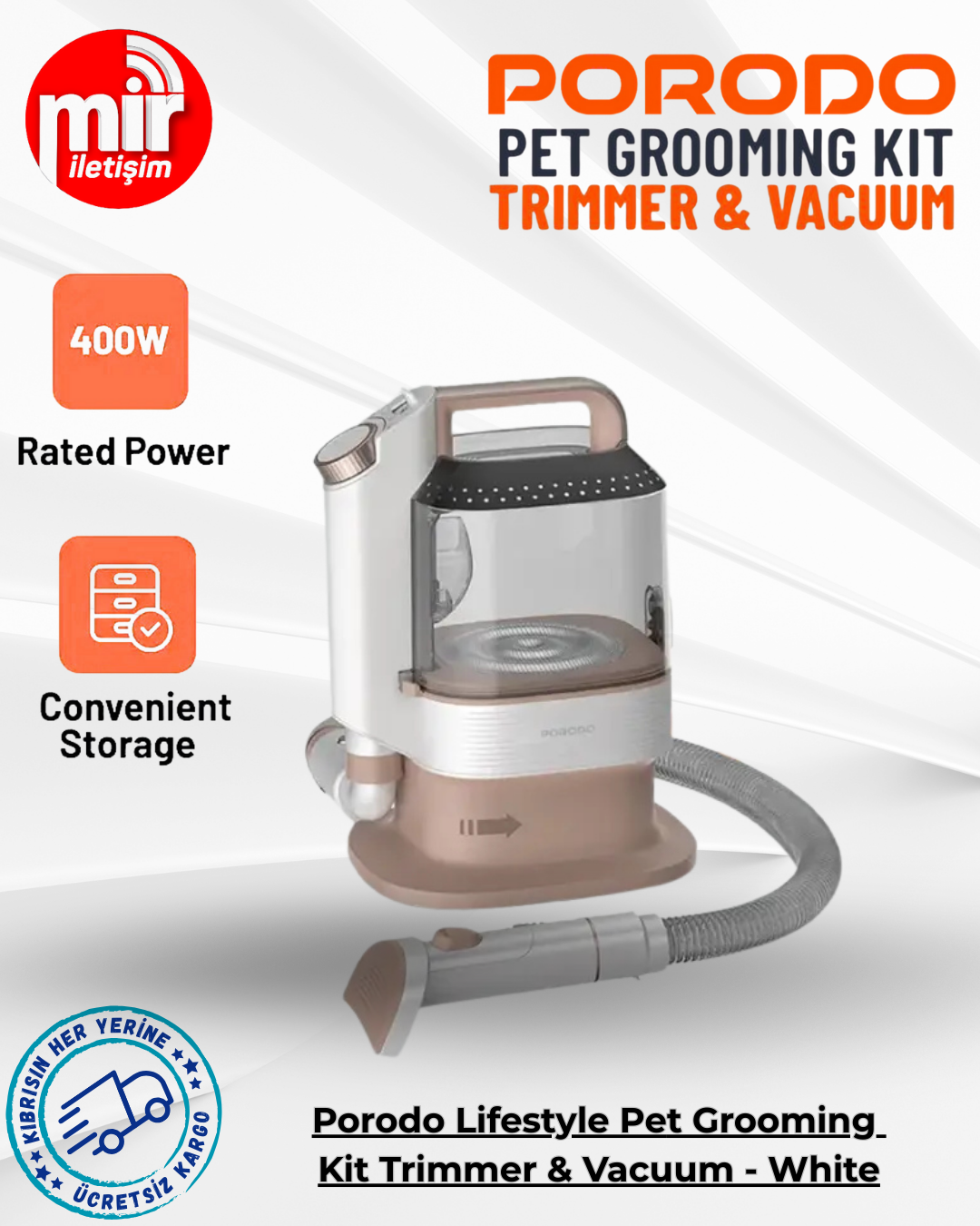 Porodo Lifestyle Pet Grooming Kit Trimmer & Vacuum - White