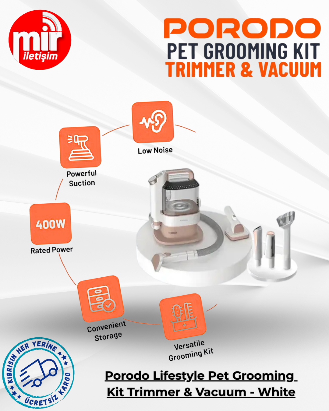 Porodo Lifestyle Evcil Hayvan Bakım Seti, Tıraş Makinesi ve Vakum Makinesi ile evcil hayvanınızın temizliğini kolaylık ve konforla sağlayan kapsamlı bir çözümdür. 13500 Pa emiş gücü sağlayan son derece güçlü 400 W motoruyla, geniş 3,2 litrelik haznesinde gevşek tüyleri ve tozu kolayca toplayabilir. Bakım seti, evcil hayvanınız için stres yaratmayan bir kullanım için 72 dB'de çalışan düşük gürültülü bir tasarıma sahiptir. Dahil edilen tıraş makinesi, 3,5 saatlik tam şarjla 2,5 saate kadar kullanıma hazırdır ve uzun süreli bakım seansları için mükemmeldir. 1,5 metrelik esnek hortum ve İngiltere 3 pimli fiş ile donatılmış cihaz, kullanımı zahmetsizdir ve geniş bir erişim sağlar. Kullanışlılık için tasarlanan set, çok yönlü bakım aparatları ve aletlerinizi düzenli ve kullanıma hazır tutmak için saklama dostu bir tasarımla birlikte gelir. Porodo Evcil Hayvan Bakım Seti, güvenilirlik ve sessiz bakım arayan evcil hayvan sahipleri için idealdir ve bakımı kolay ve keyifli hale getirir.