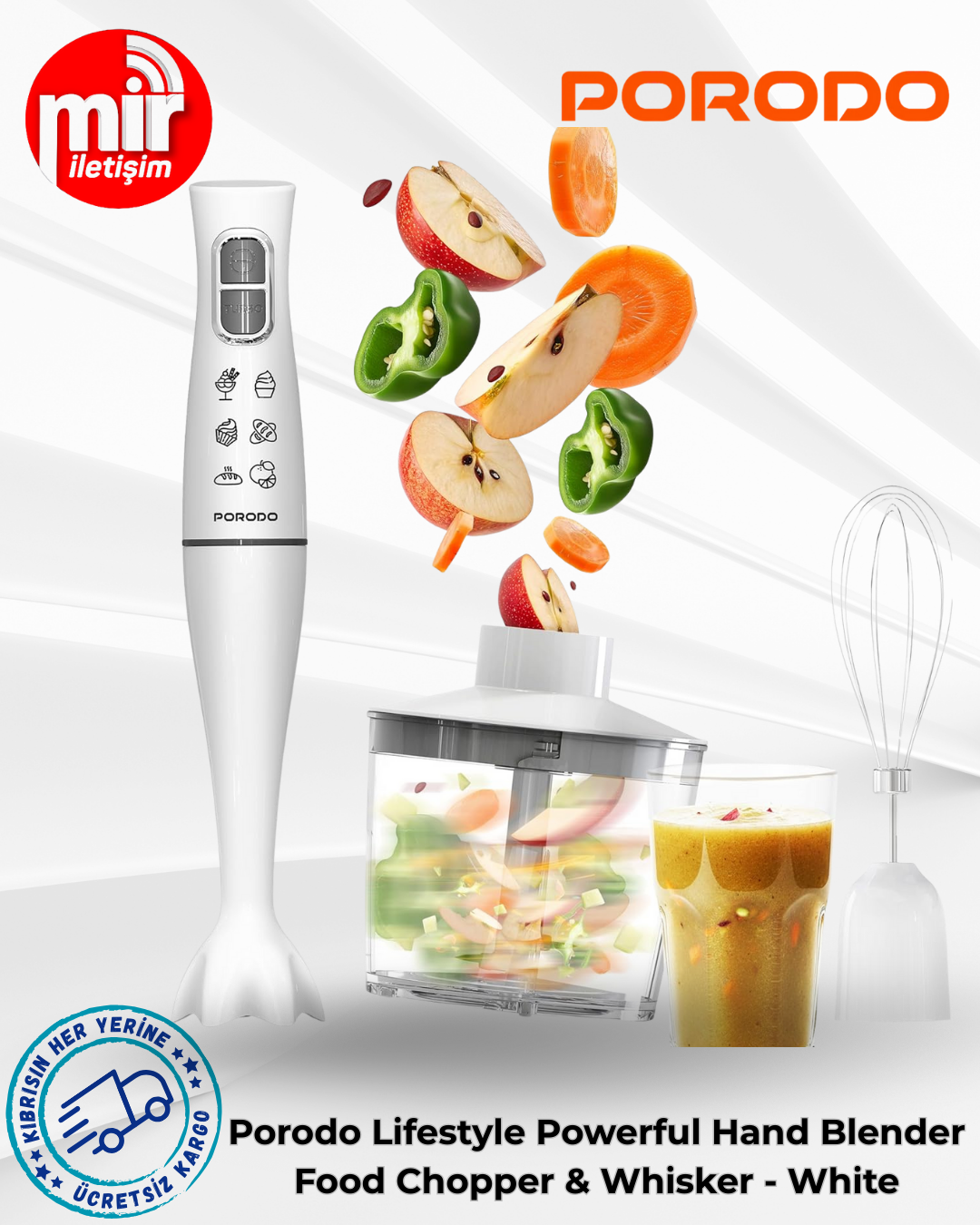 Porodo Lifestyle Powerful Hand Blender Food Chopper & Whisker - White