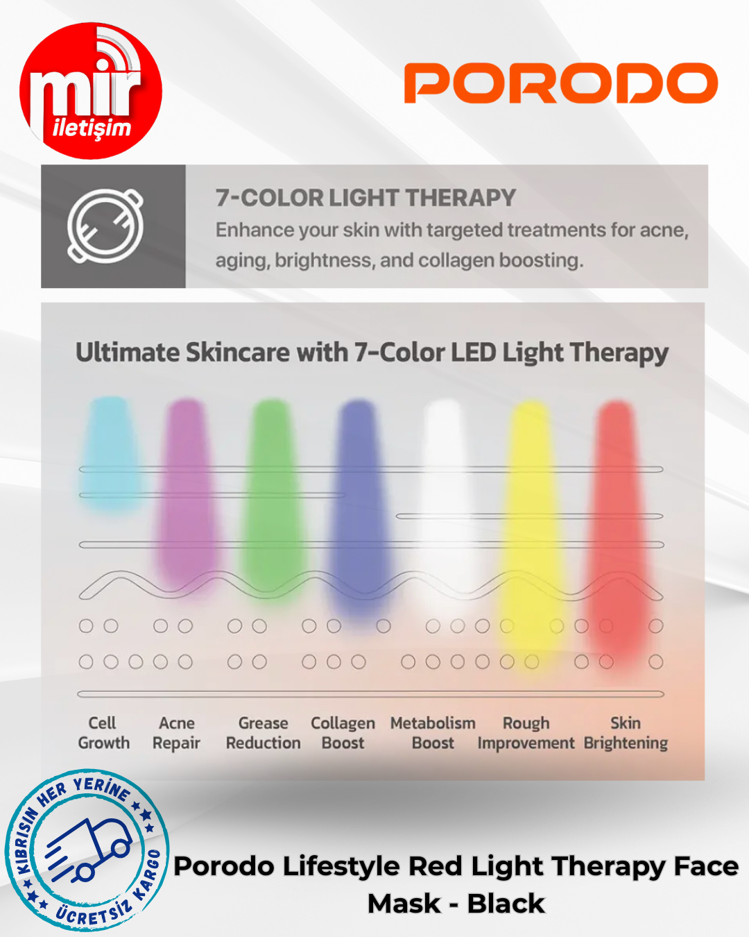 - LED Işıklar: 7 Dalga Boyu (Camgöğü, Mor, Yeşil, Mavi, Beyaz, Sarı, Kırmızı)