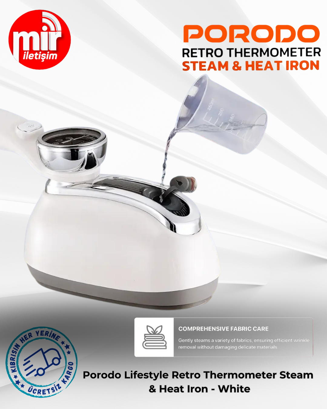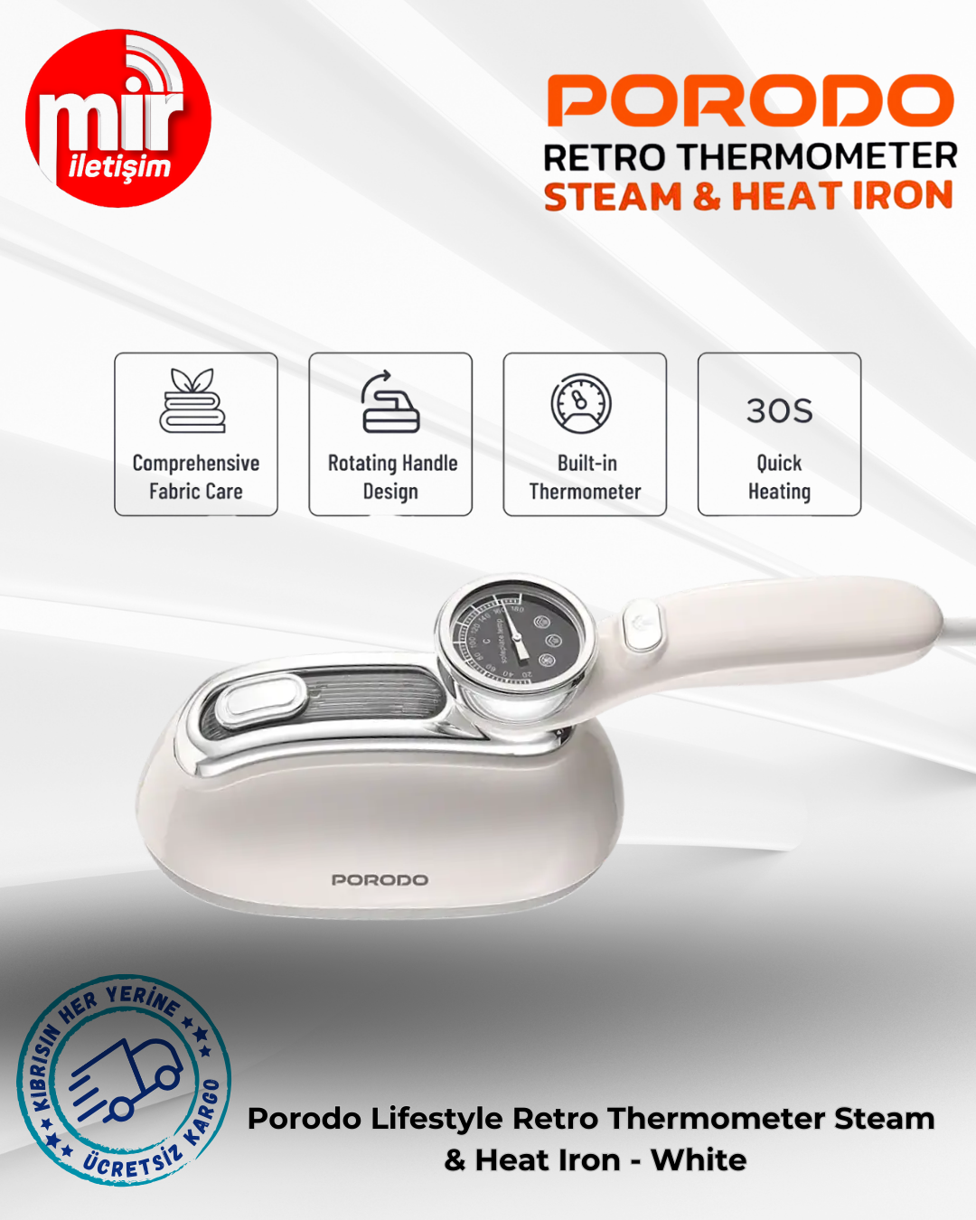 Porodo Lifestyle Retro Thermometer Steam & Heat Iron - White
