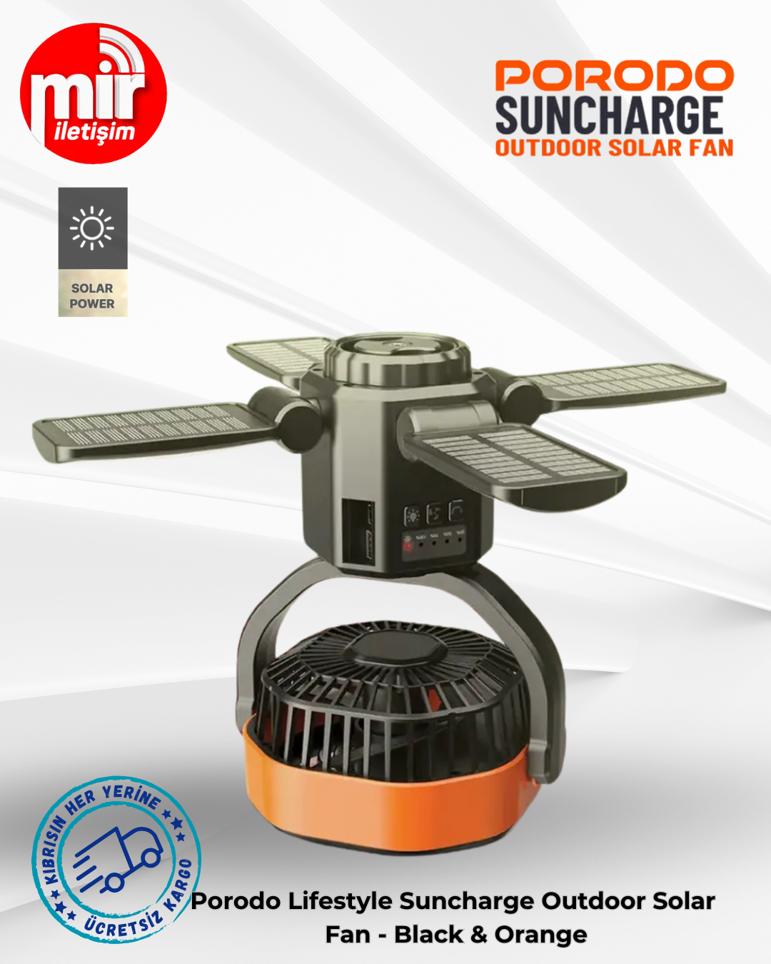 Porodo Lifestyle Suncharge Outdoor Solar Fan - Black & Orange