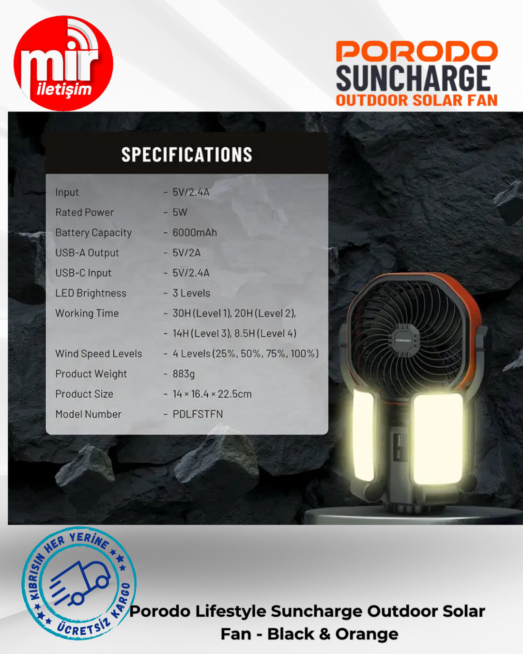 Porodo Lifestyle Suncharge Açık Hava Güneş Enerjili Vantilatör - Açık havada konforlu bir ortam için her şey mevcut. En düşük ayarda 30 saate kadar çalışma süresi sağlayan ekstra büyük 6000mAh bataryası, 4 kademeli rüzgar ayarı (%25, %50, %75 ve %100) ve dahili LED ışığı için 3 parlaklık ayarı ile ihtiyaca göre son derece özelleştirilebilir. Bu vantilatör, USB-A Çıkışı (5V/2A) ve USB-C Girişi (5V/2.4A) üzerinden verimli ve hızlı bir şekilde şarj olur. Kurulum için bir asma kancası sağlanmıştır ve 150°'de otomatik salınım yaparak eşit hava akışı dağılımı sağlar. Kamp ve park aktiviteleri için mükemmeldir. Güneş enerjisiyle şarj özelliği, onu gerçekten çevre dostu ve enerji verimli bir yöntem haline getirir. Porodo Lifestyle Suncharge Açık Hava Güneş Enerjili Vantilatör, nerede olursanız olun sizi saatlerce serin ve aydınlık tutmak için tasarlanmıştır.