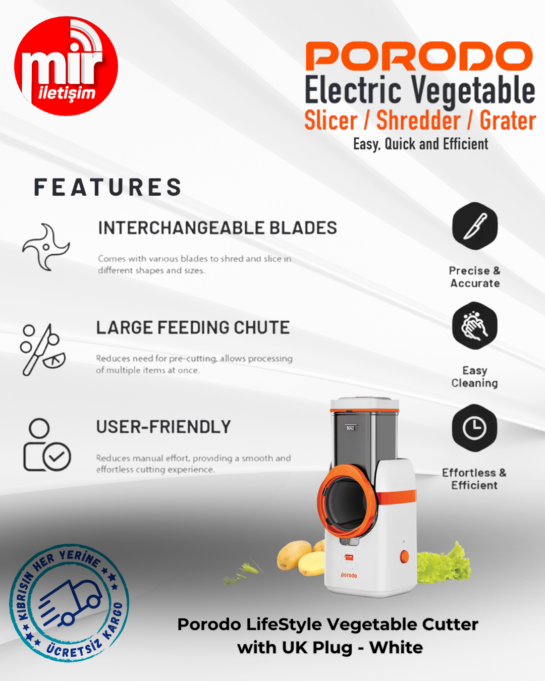 Porodo LifeStyle Vegetable Cutter with UK Plug - White
