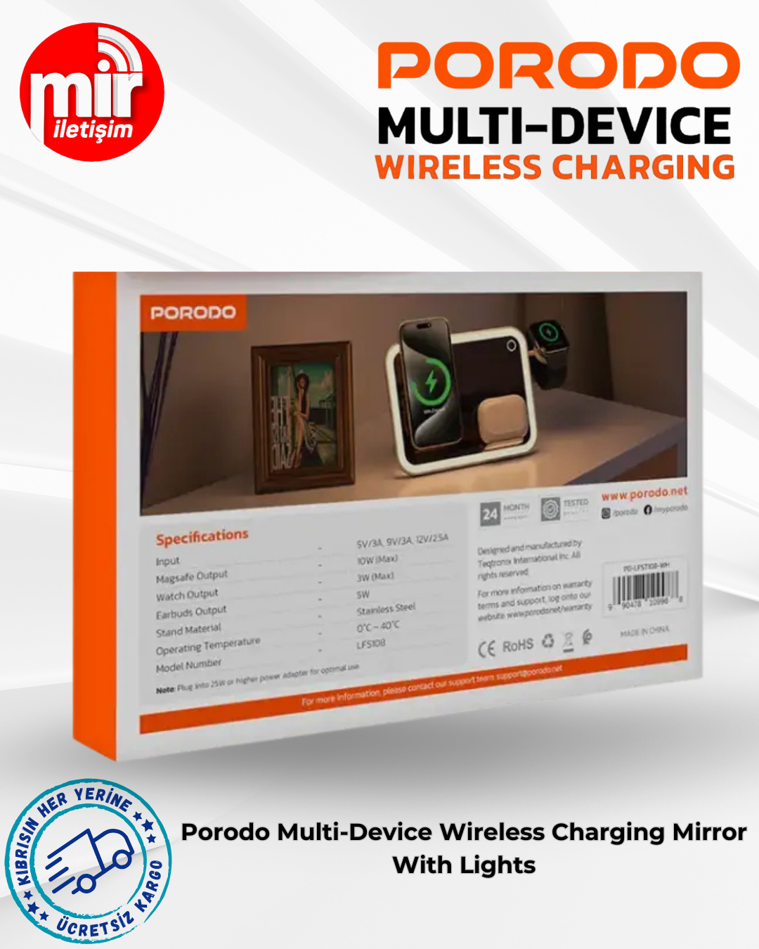 Porodo Çoklu Cihaz Kablosuz Şarj Aynası, kullanışlı ve şık bir aksesuardır. 10W MagSafe özelliğine sahip olup,