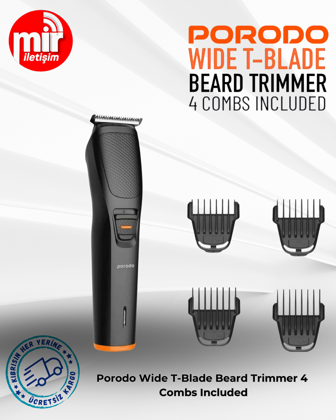 Porodo Wide T-Blade Beard Trimmer 4 Combs Included