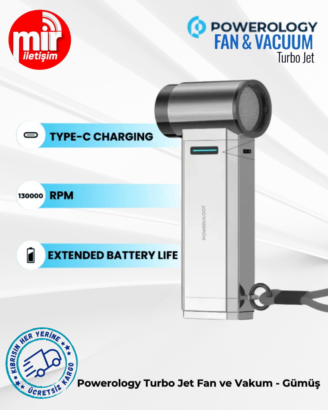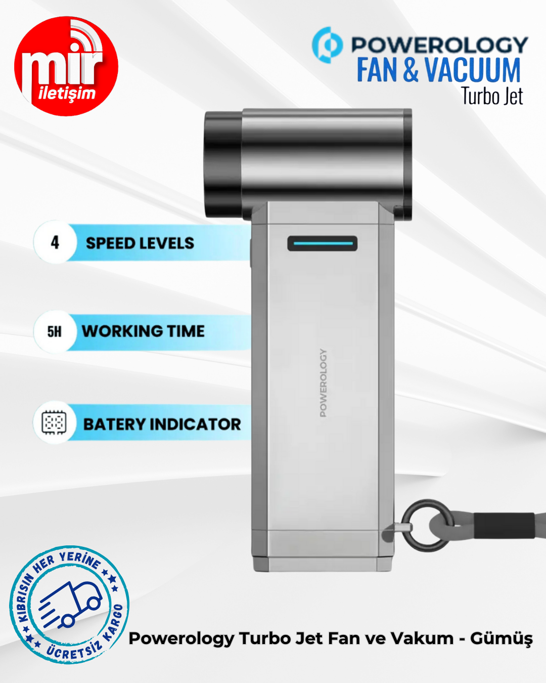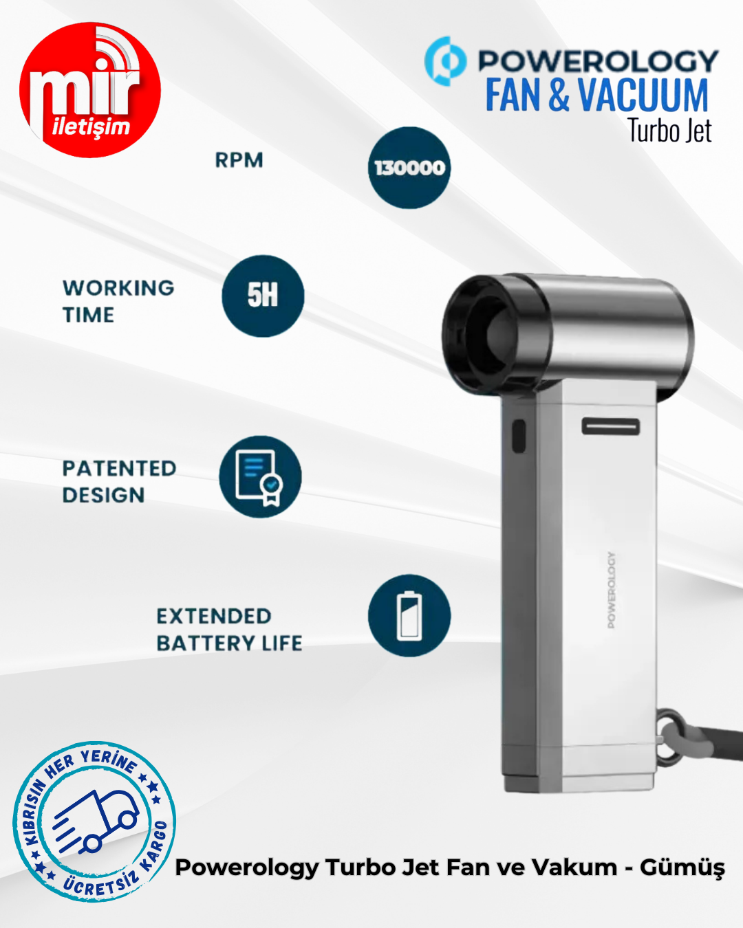 Powerology Turbo Jet Fan ve Vakum - Gümüş
